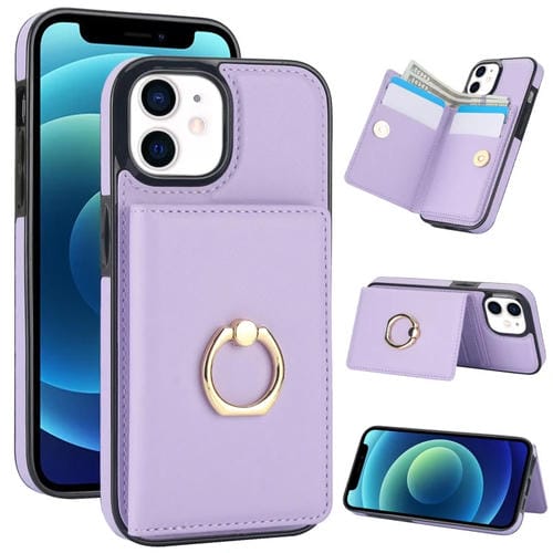 Estuche para Teléfono iPhone 12 Mini con Soporte para Anillo y Tarjeta Antirrobo Rfid (Púrpura)