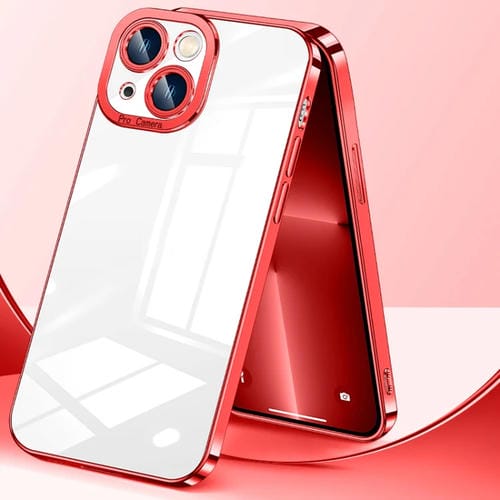 Estuche para teléfono iPhone 12 Mini alta transparencia con baño de cristal (Rojo Rubí)