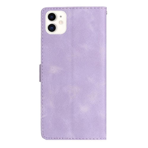 Funda para iPhone 12 Mini Cuero Estampado Flores en Relieve (Púrpura)