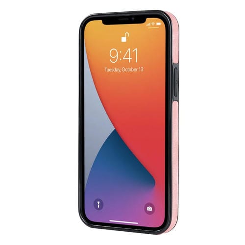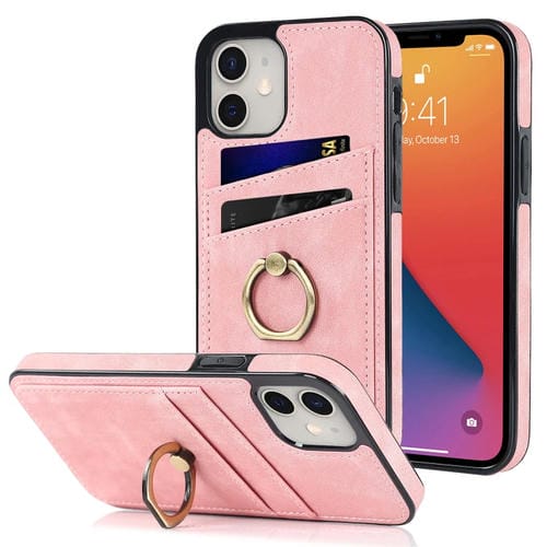 Funda para iPhone 12 Mini Cuero con Parche Vintage y Soporte para Anillo (Rosa)