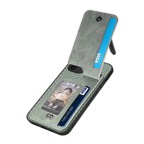 Funda de teléfono iPhone 12 Mini con cremallera vertical de fibra de carbono (Verde)
