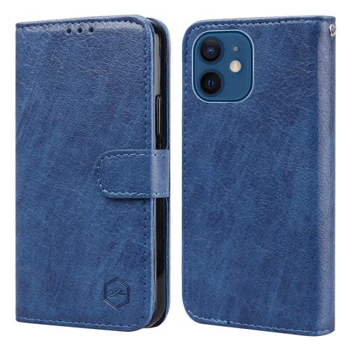 Funda para iPhone 12 Mini Sensación de Piel Textura de Cuero Aceitoso PU + TPU (Azul Oscuro)