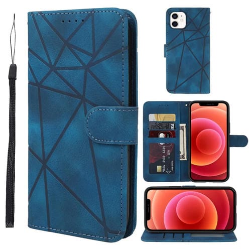 Funda para iPhone 12 Mini Skin Feel Cuero Líneas Geométricas (Azul)