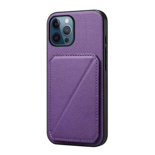 Estuche para teléfono iPhone 12 Pro D04 con ranura para tarjeta dual y textura de becerro (Púrpura)