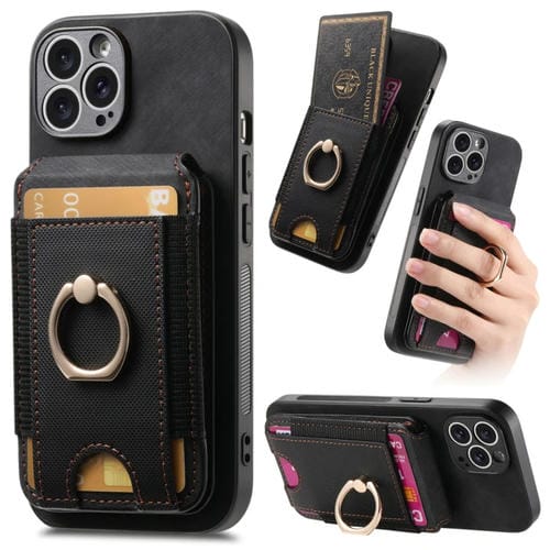 Funda para teléfono iPhone 12 Pro Cuero con Soporte Magnético Divisible Retro y Bolsa para Tarjetas (Negro)