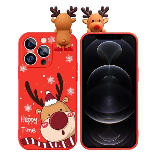 Funda de teléfono TPU iPhone 12 Pro con muñeco en relieve de ciervo y dibujo coloreado (Alce Lindo)