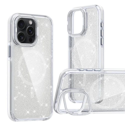 Funda para Teléfono iPhone 12 Pro Magsafe con Soporte para Lentes y Purpurina (Blanco)