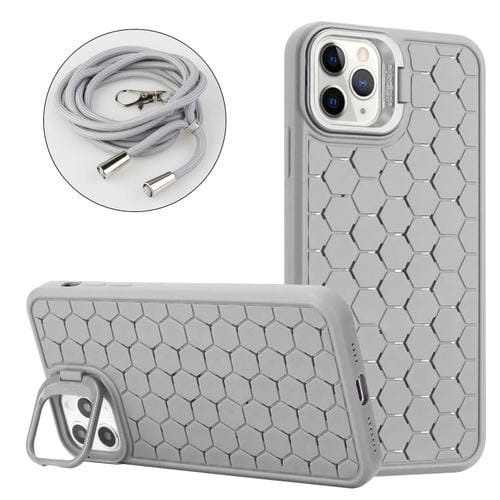 Funda para teléfono iPhone 12 Pro Honeycomb Radiating Lens Holder Magsafe con Cordón (Gris)