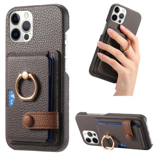 Funda para Teléfono iPhone 12 Pro Litchi Leather Oil Edge Ring Card Back (Gris)