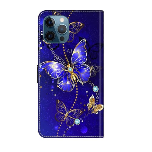 Funda Protectora de Cuero para iPhone 12 Pro Max y 13 Pro Max Crystal 3D a Prueba de Golpes (Mariposa de Diamante)