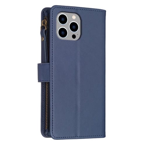 Funda para iPhone 12 Pro Max Cartera de Cuero con Tapa y 9 Ranuras para Tarjetas (Azul)