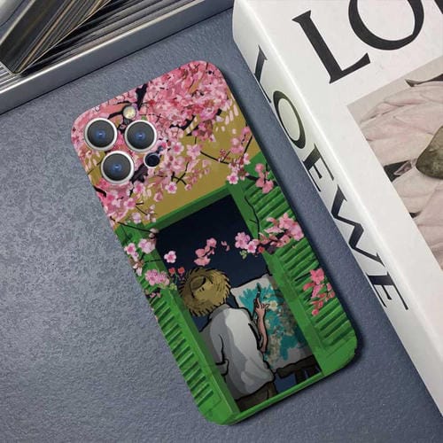 Caja del Teléfono PC para iPhone 12 Pro Max Agujero Preciso Patrón de Pintura al Óleo (Flor de Durazno)