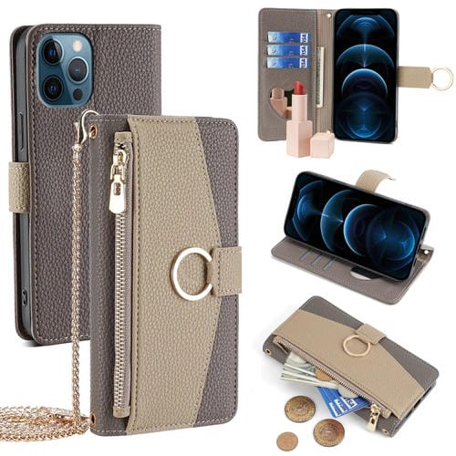 Funda de Cuero Crossbody para iPhone 12 Pro Max Litchi Texture (Gris)