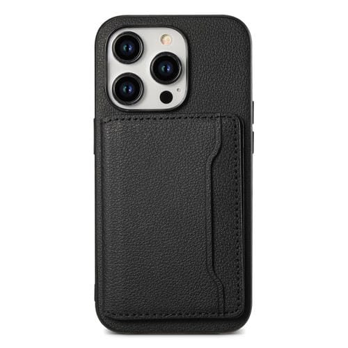 Estuche para Teléfono iPhone 12 Pro Max Diseño Bolsa para Tarjetas Textura de Pantorrilla (Negro)