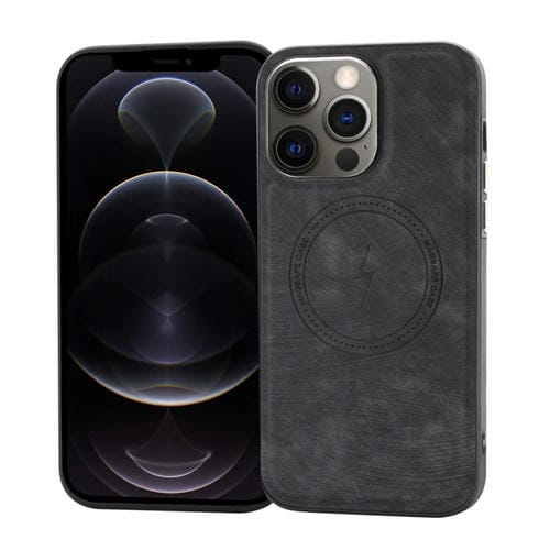 Funda de teléfono iPhone 12 Pro Max Magsafe de cuero lateral (Negro)