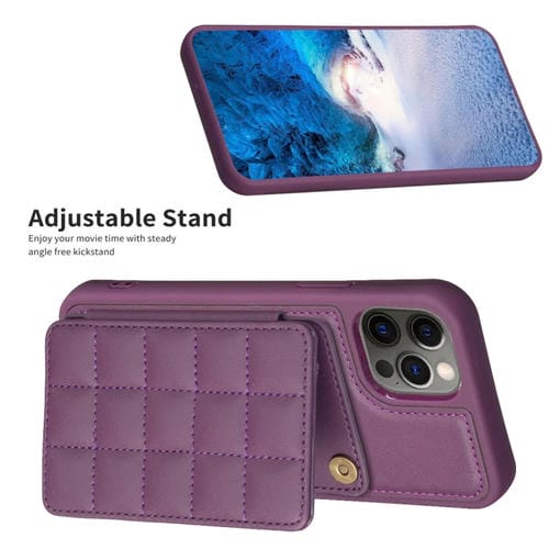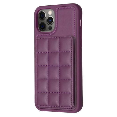 Funda para Teléfono iPhone 12 Pro Max Grid Ranura para Tarjeta (Morado Oscuro)