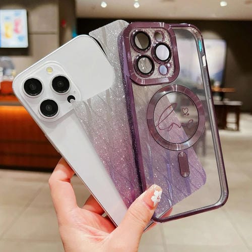 Estuche para Teléfono TPU iPhone 12 Pro Max Magsafe Dual-Love Leaves con Brillo Degradado (Dorado)