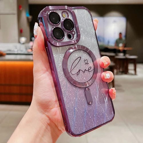 Estuche para Teléfono iPhone 12 Pro Max Magsafe Dual-Love Leaves TPU Brillo Degradado (Púrpura)