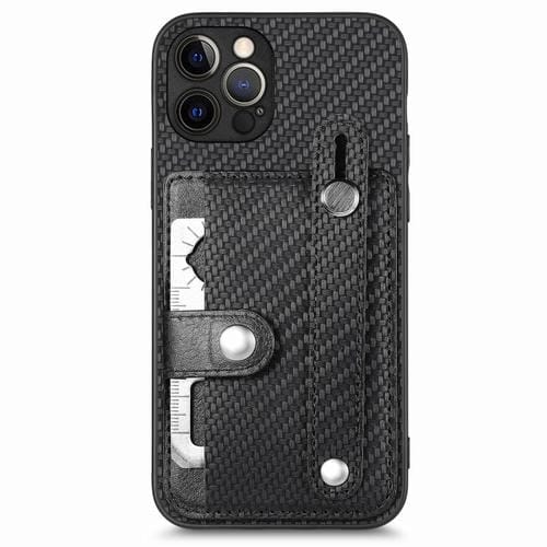 Funda para iPhone 12 Pro Max Muñequera Pata de Cabra Tarjeta Monedero Contraportada con Herramienta Cuchillo (Negro)