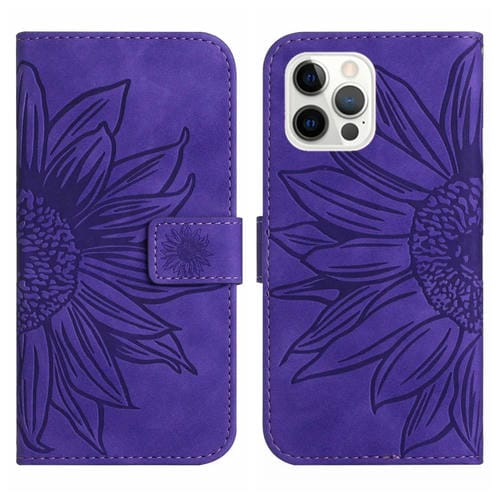 Funda Flip de Cuero para iPhone 12 Pro Max Skin Feel Sun Flower Pattern con Cordón (Púrpura Oscuro)
