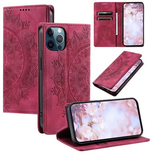 Funda para iPhone 12 Pro Max Totem Cuero Magnética en Relieve (Rojo)