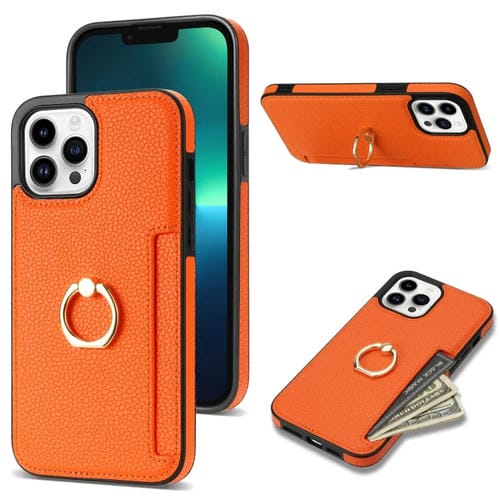 Funda Trasera iPhone 12 Pro Ring Card Litchi Cuero Naranja