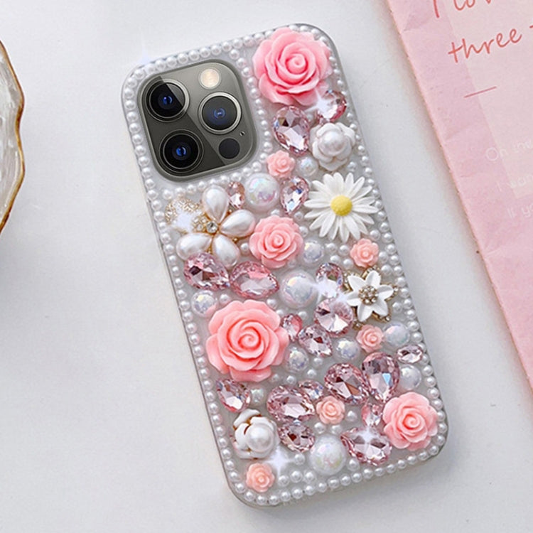 Estuche para teléfono iPhone 12 Pro Rose con diamante para PC con juego de mano (Rosa)