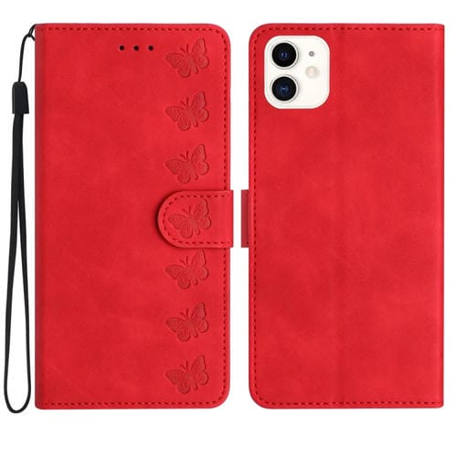 Caja de Teléfono para iPhone 12 Seven Butterflies Cuero En Relieve (Rojo)