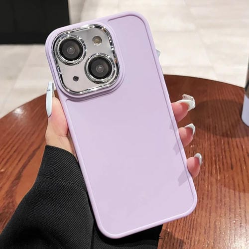 Caja de teléfono para iPhone 13 con marco de Lente galvanizada y Película de Lente (Púrpura Claro)
