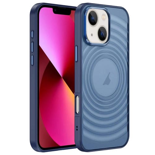 Estuche para teléfono iPhone 13 Corrugado con sensación de piel acrílica (Azul)