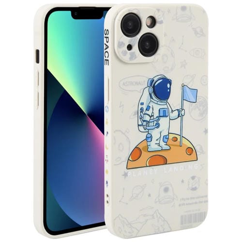 Funda de teléfono iPhone 13 Patrón de Astronauta borde recto silicona (Blanco)