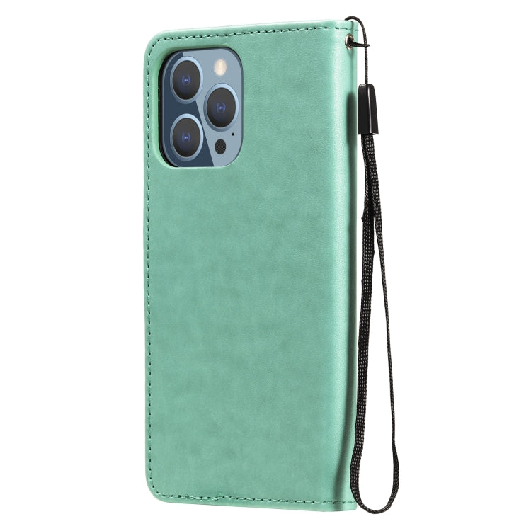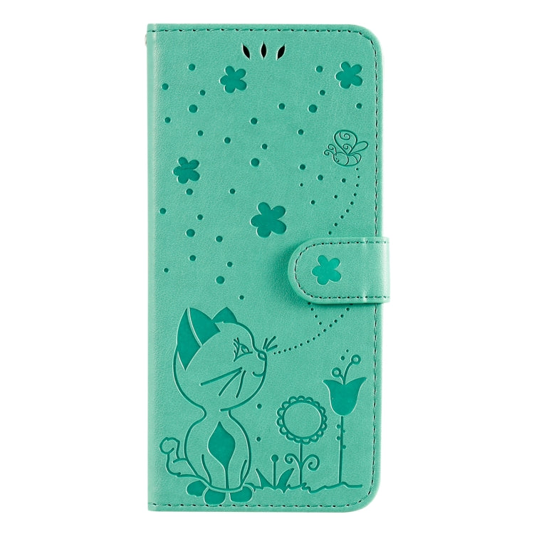 Funda de Cuero iPhone 13 Pro Cat Bee Patrón En Relieve con Tapa Horizontal Soporte Ranuras Tarjetas Billetera (Verde)
