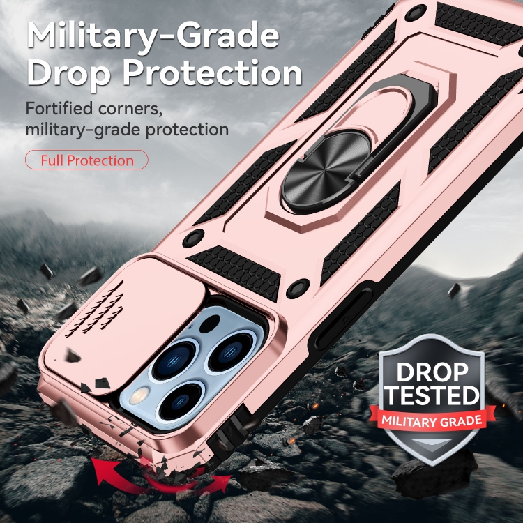 Estuche para Teléfono iPhone 13 Pro Soporte Deslizante Camshield (Oro Rosa)