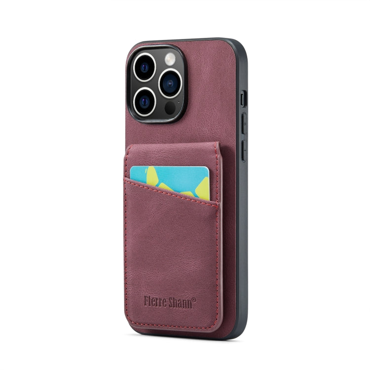 Funda para iPhone 13 Pro Fierre Shann Crazy Horse Tarjetero Contraportada Pu (Rojo Vino)