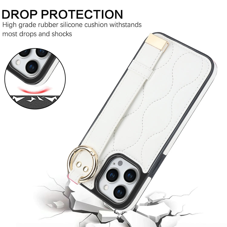 Funda para iPhone 13 Pro Antideslizante de PU con Anillo y Muñequera (Blanco)
