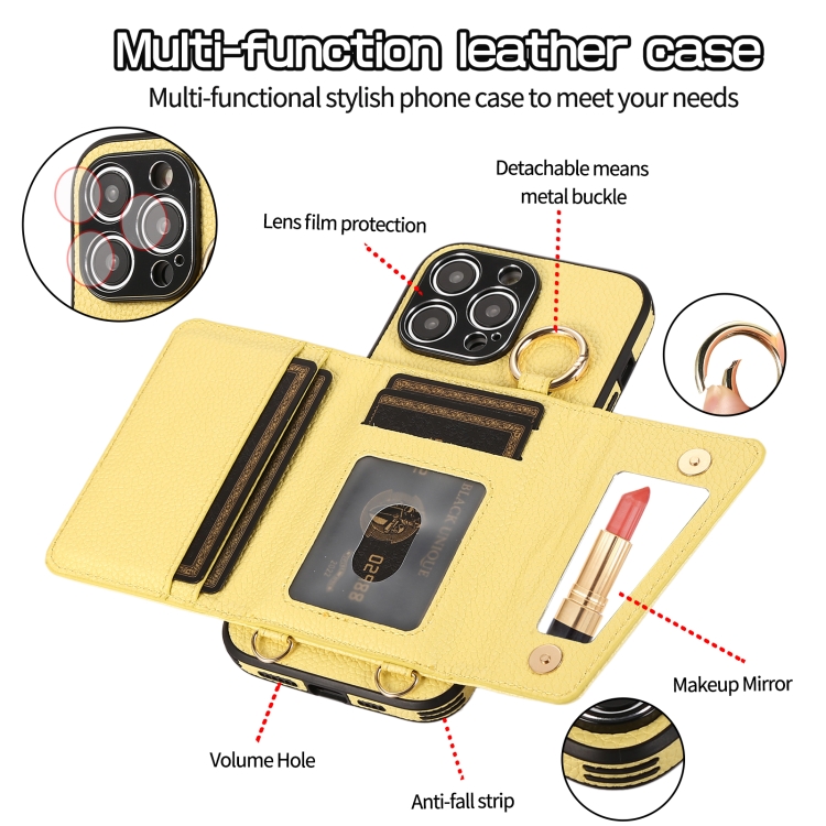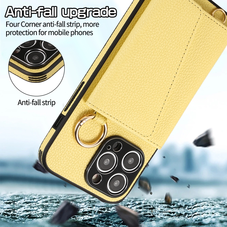 Funda para Teléfono iPhone 13 Pro Cubierta Trasera de Cuero con Anillo Cruzado (Amarillo)