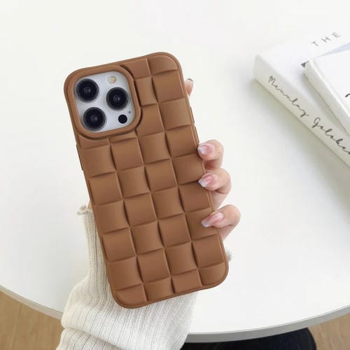 Funda para iPhone 13 Pro Max 3D Cube Weave Texture Skin Feel (Marrón)