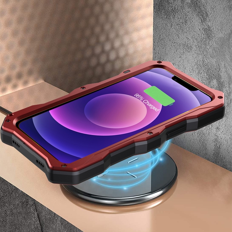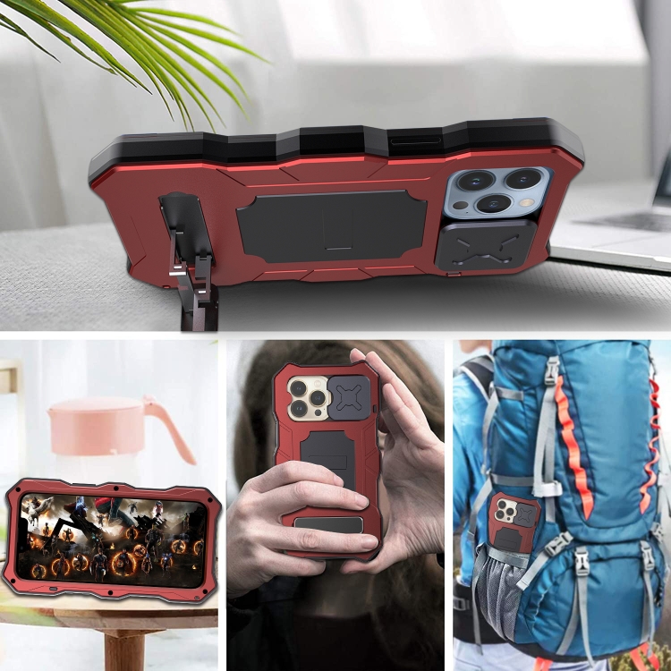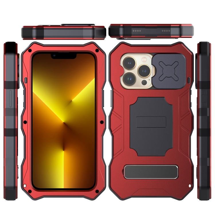 Funda para iPhone 13 Pro Max Camshield a Prueba de Golpes Resistente al Agua y Polvo Caja de Metal con Soporte (Rojo)