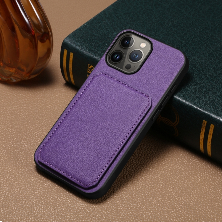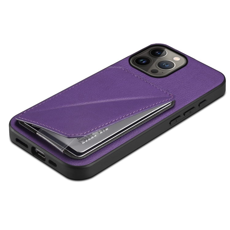Funda para Teléfono iPhone 13 Pro Max D04 con Ranura para Tarjeta Dual Textura de Pantorrilla (Púrpura)