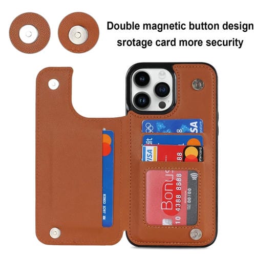 Estuche para Teléfono iPhone 13 Pro Max Cuero de PU Rombal con Doble Hebilla (Marrón)