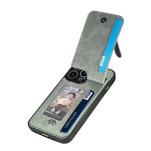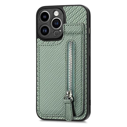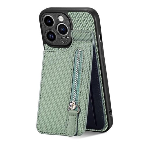 Funda de teléfono iPhone 13 Pro Max con cremallera vertical fibra de carbono (Verde)