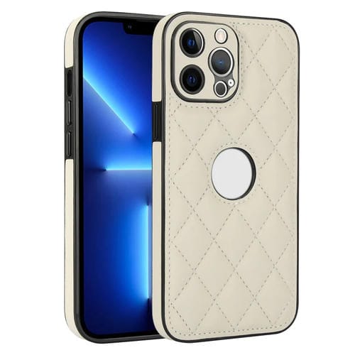 Funda para Teléfono iPhone 13 Pro Max con Contraportada de Cuero Rómbico (Blanco)