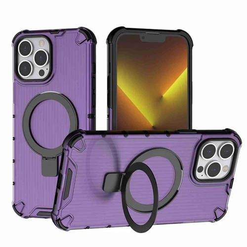 Funda para Teléfono iPhone 13 Pro Max con Soporte Rejilla a Prueba de Golpes (Púrpura)