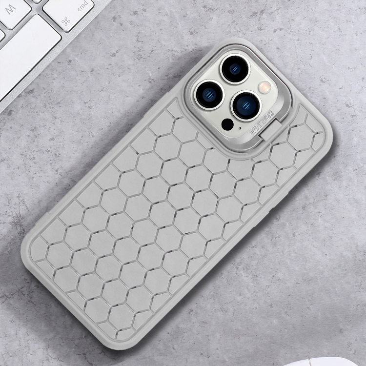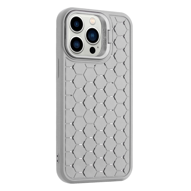 Funda para teléfono iPhone 13 Pro Max Honeycomb Radiating Lens Holder TPU (Gris)