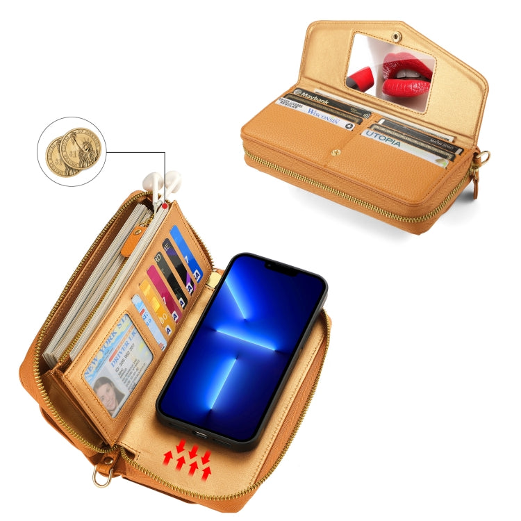 Funda para Teléfono iPhone 13 Pro Max Magsafe Crossbody Cartera Multifuncional con Cremallera Cuero Litchi (Naranja)