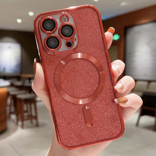 Funda para Teléfono iPhone 13 Pro Max Magsafe Glitter Galvanoplastia TPU (Rojo)