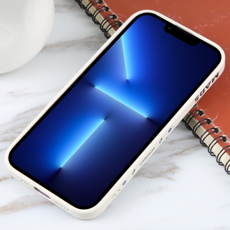 Funda de teléfono iPhone 13 Pro Max Patrón de Astronauta Borde Recto Silicona (Astronauta de Marte-Blanco)