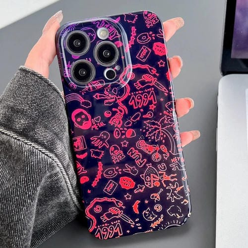 Funda para iPhone 13 Pro Max PC Patrón Pintado Precise Hole (Black Red Graffiti)