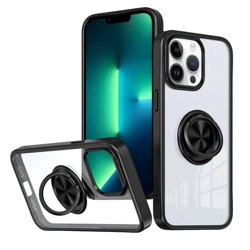 Funda para Teléfono iPhone 13 Pro Max Ring Holder PC Hybrid TPU (Negro)