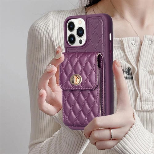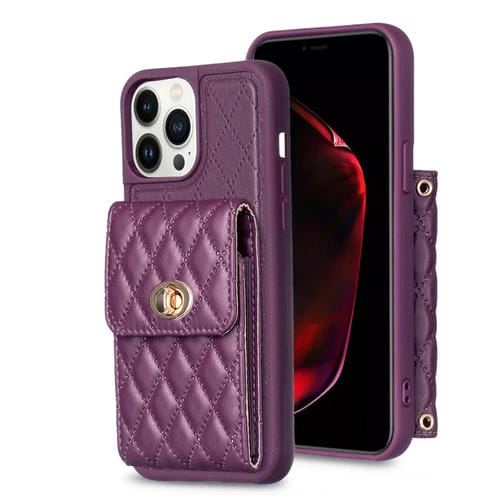Funda para iPhone 13 Pro Max Rombal Cuero con Hebilla de Metal Vertical (Morado Oscuro)